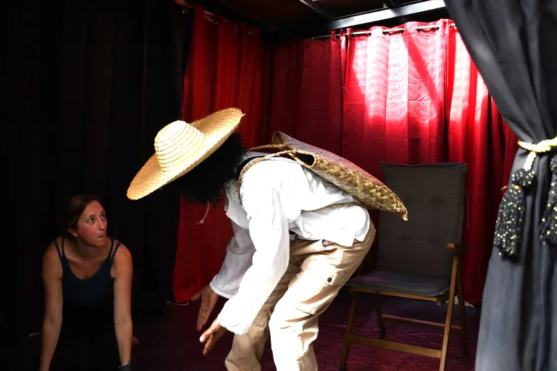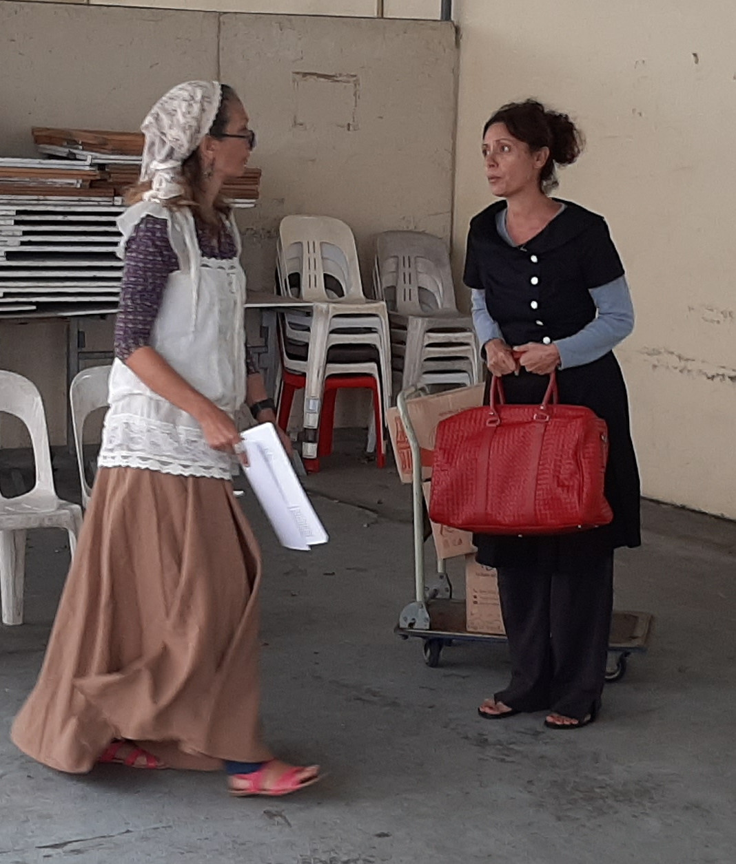 Nous voilà à nouveau réunis (Céline, Sylvie, Alfred et Vincent) sur le lieu de répétition. Avec cette fois-ci, quelques décors et costumes supplémentaires pour l'acte 1 de notre projet de théâtre en cours.
