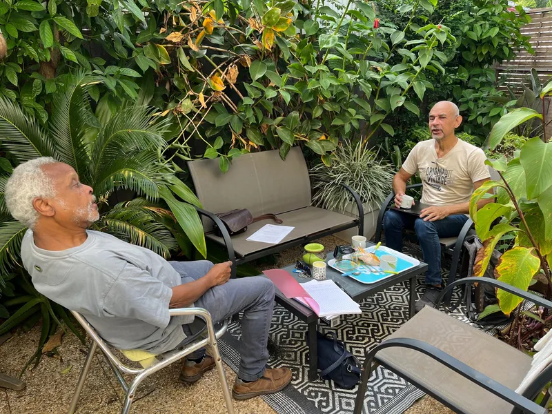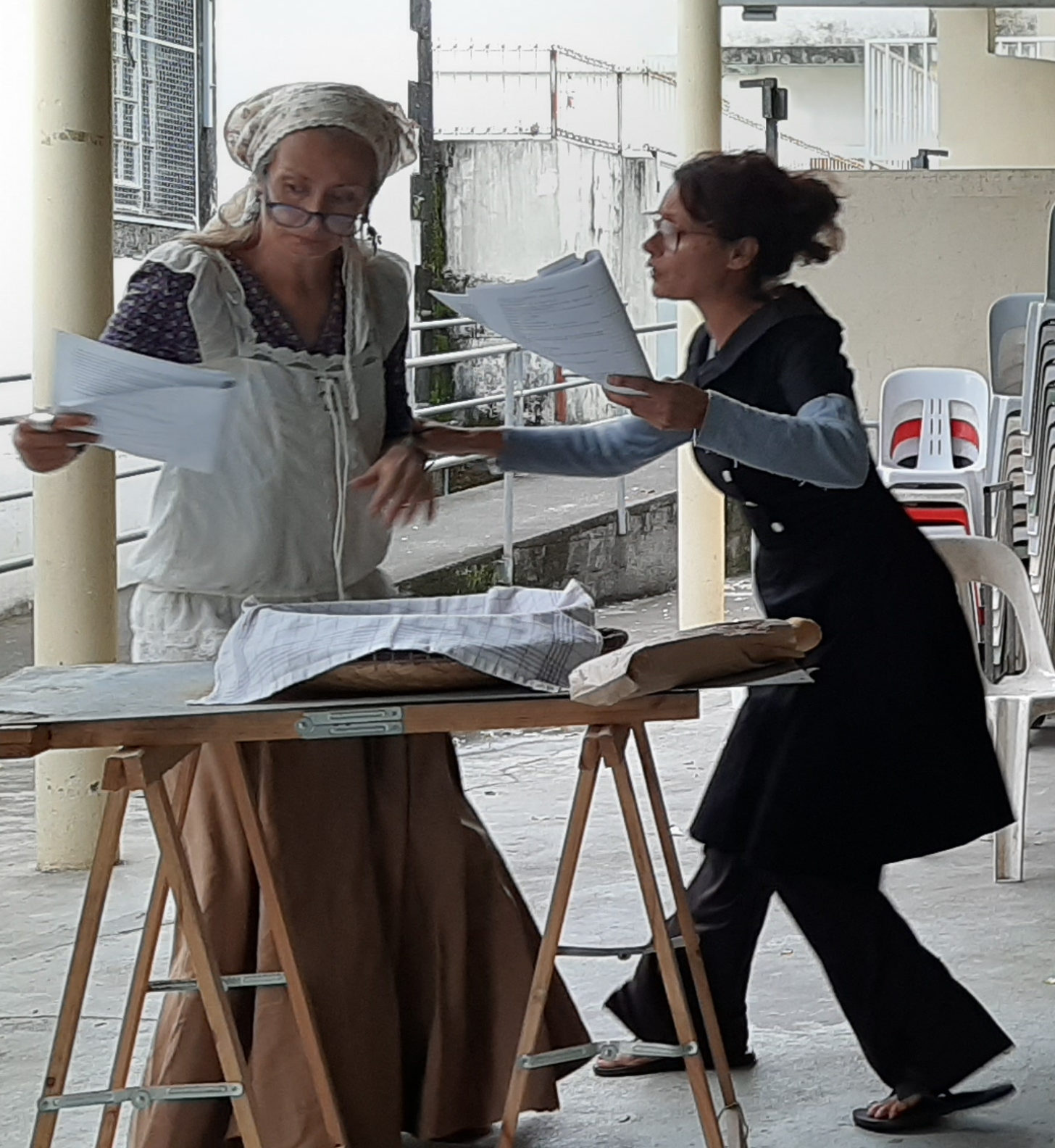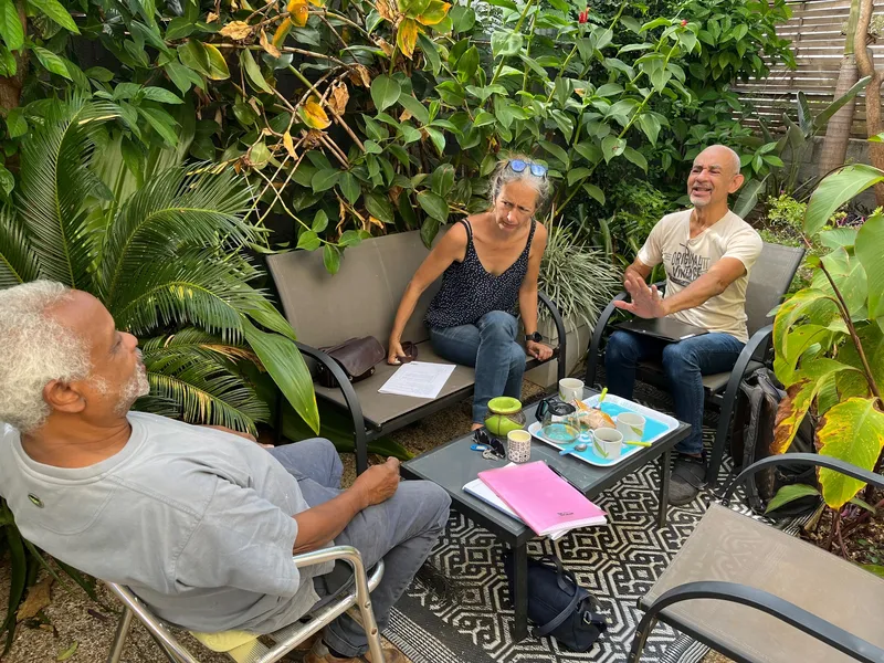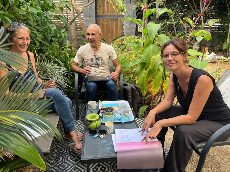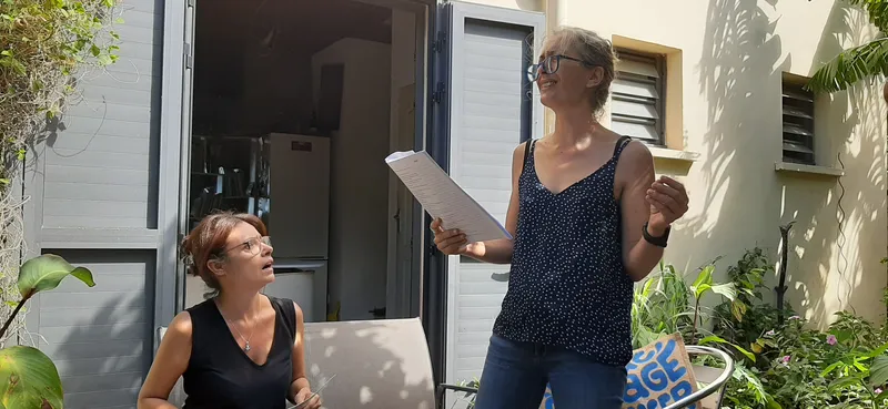 Rendez-vous pris ce samedi matin à Saint-Pierre où la petite troupe décida d'entamer sa deuxième lecture avec Sylvie et Céline sous les feux de la rampe... Et sous les regards perspicaces d'Alfred (metteur en scène) et de Vincent (assistant)...